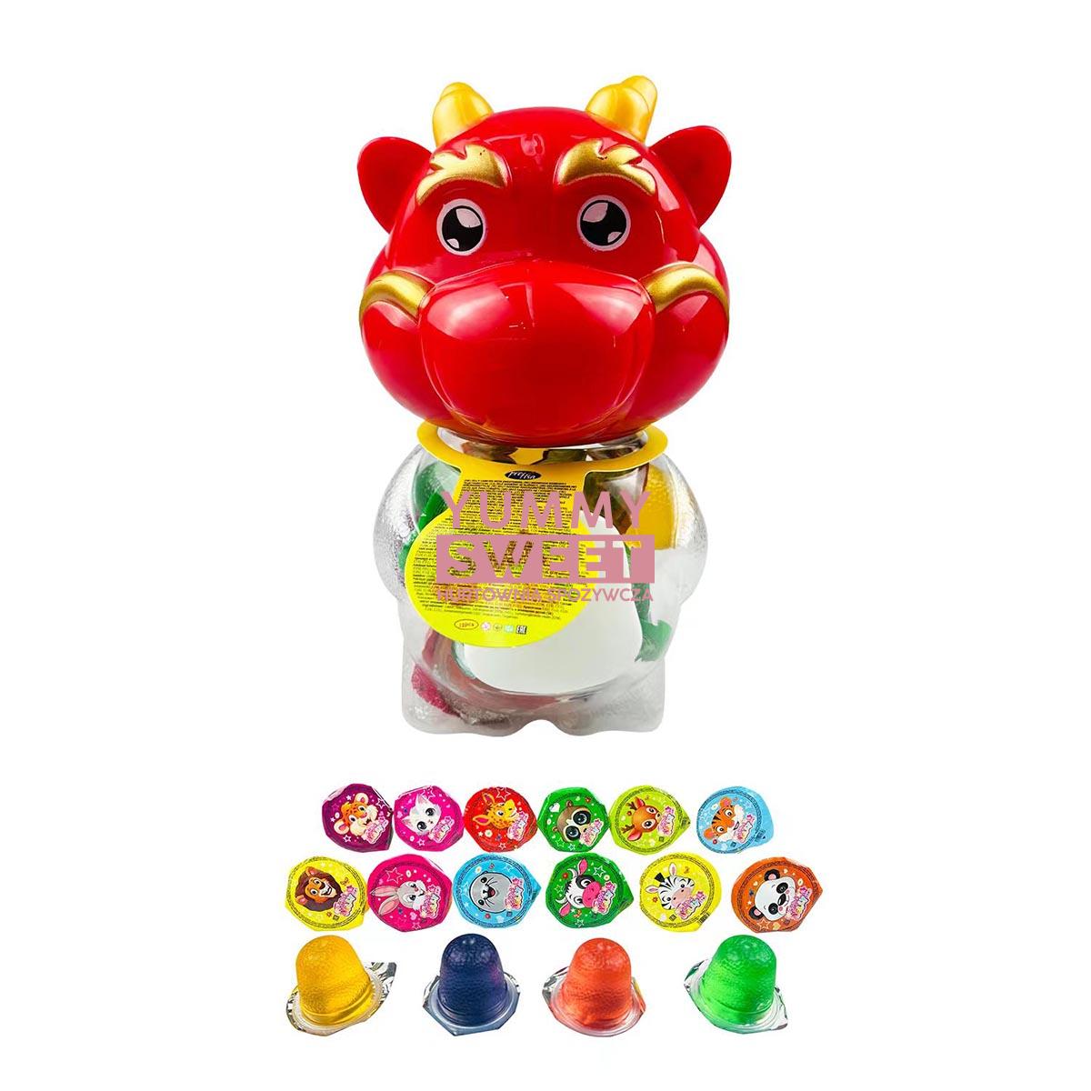 Składniki: syrop maltozowy, cukier, woda, żelatyna, sok jabłkowy; agar, pektyna; regulatory kwasowości: E296, E330, E331; olej kokosowy, substancje glazurujące: E903, substancja konserwująca: E202; aromaty, barwnik: E102, E129, E133. Barwniki E102 oraz E129 mogą mieć szkodliwy wpływ na aktywność i skupienie uwagi u dzieci.